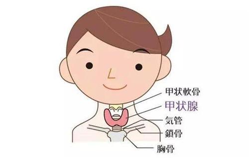 甲状腺坐落颈部,在甲状软骨下方,气管两旁,主要分泌的是甲状腺激素,是以碘和酪氨酸为原料。甲状腺是人体重要的内排泄腺体,对人体健康以及新陈代谢有重要意义。